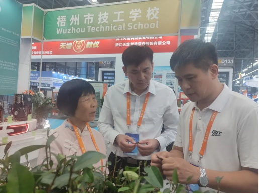 此外,国家级六堡茶制作技艺非遗传承人韦洁群莅临beat365展位,介绍六堡茶的种植技术、管理要点、品鉴方法和文化积淀,促进非物质遗产文化传承与技工教育人才培养相融合。