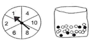 2.商场有一个活动,先旋转转盘指针。如果指针停在奇数的位置,玩家就可以从袋子抽出一个弹珠。转盘和袋子里的弹珠如下图所示,如果抽到黑色的弹珠就能得到奖品,小明试了一次,请问他得到奖品的可能性为何?