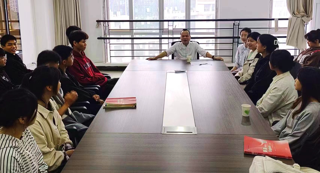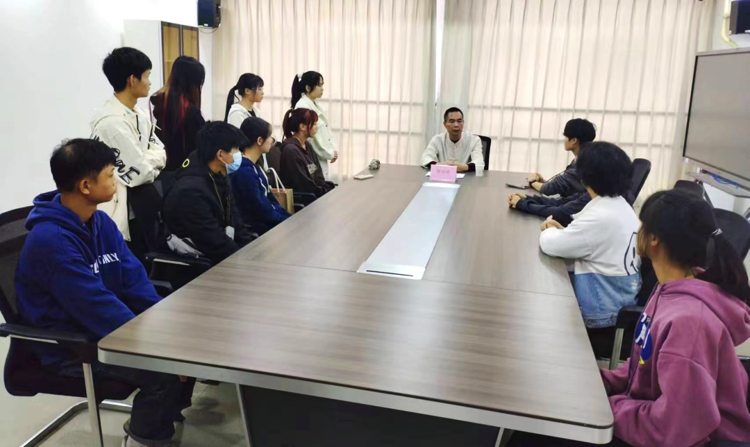 国家级非遗传承人韦洁群、自治区级非遗传承人陈伯昌、黎坚斌、苏兆华、陈奎香、刘锦芳、易燕花出席见面会,和学生座谈交流,分享自己成长、奋斗、创业故事,传播做人做茶的真谛。