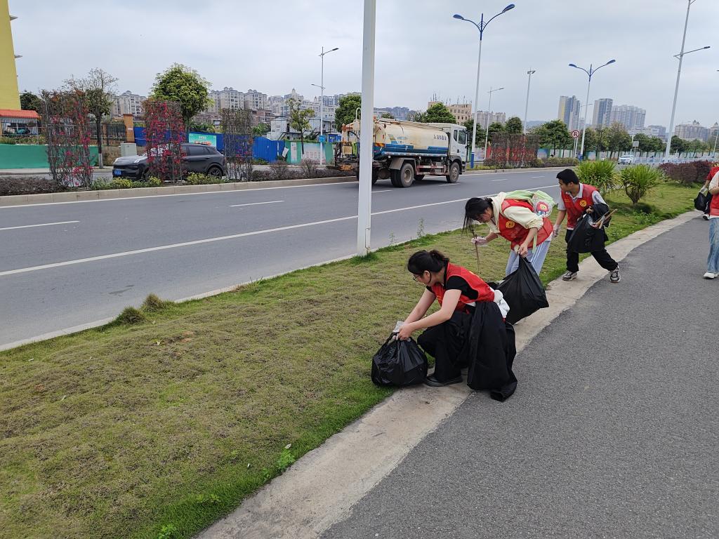 龙新小学对开西江河岸是钓鱼的好场所。钓鱼人在钓鱼过程经常遗弃一些装鱼料的塑料袋,日积月累,河岸垃圾随处可见,很不雅观。在学院团委书记谭宇高带领下,30多名志愿者身穿红马甲,手戴手套,拿着垃圾袋分工合作,开展拉网式排查,把河岸边坡和防洪堤绿化带的垃圾一网打尽。