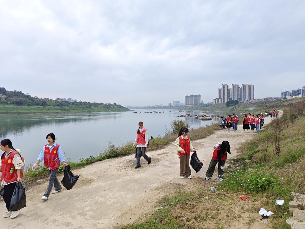 3月23日,乡院学生志愿者开展“保 护母亲河·爱我梧州”文明实践志愿服务活动,到西江河岸清理垃圾,教育劝导市民树立文明、环保的意识。