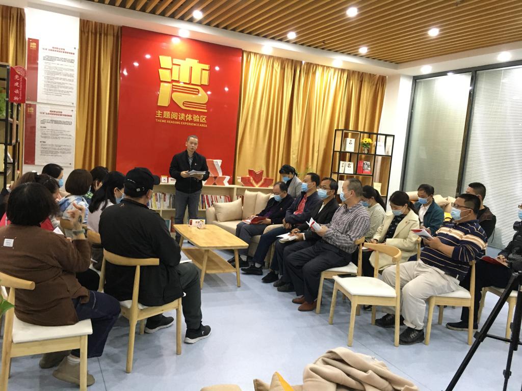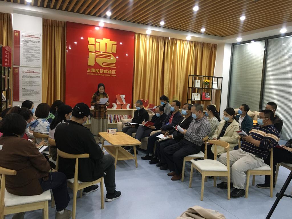 学院“红湾”主题阅读体验区环境优雅,红色教育学习资源丰富,是学习教育的好地方。在这里,党员们沉浸在学习中,并积极开展心得交流。
